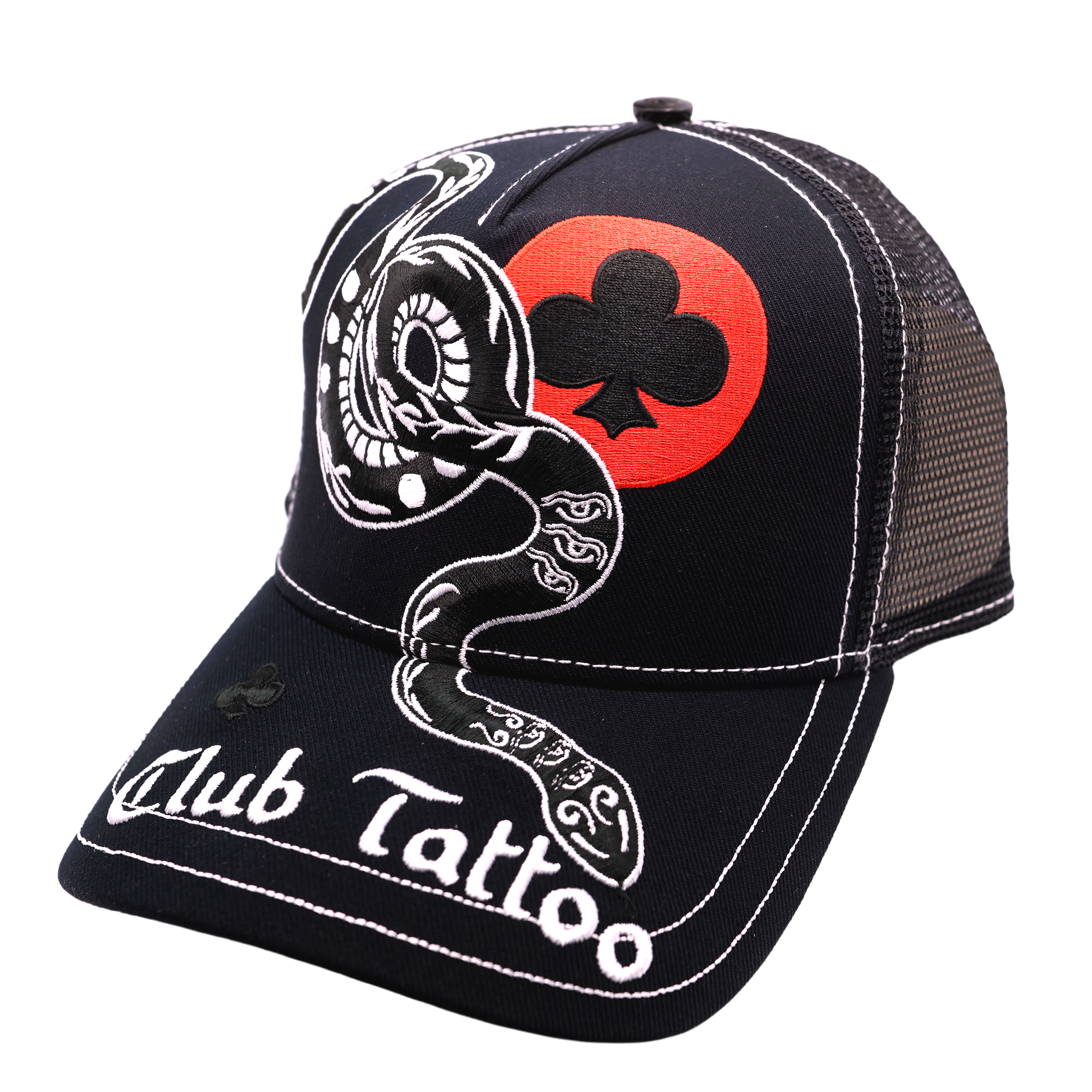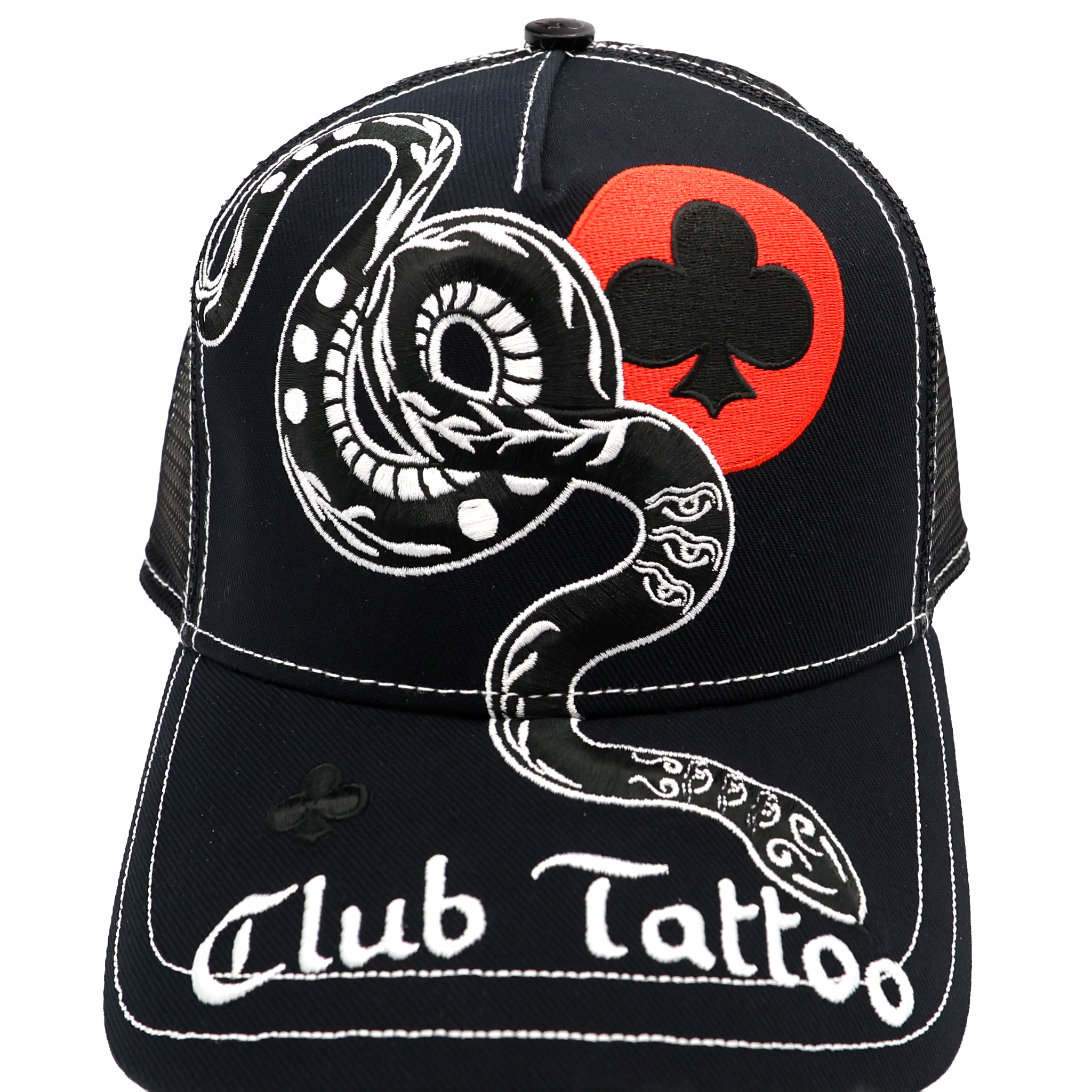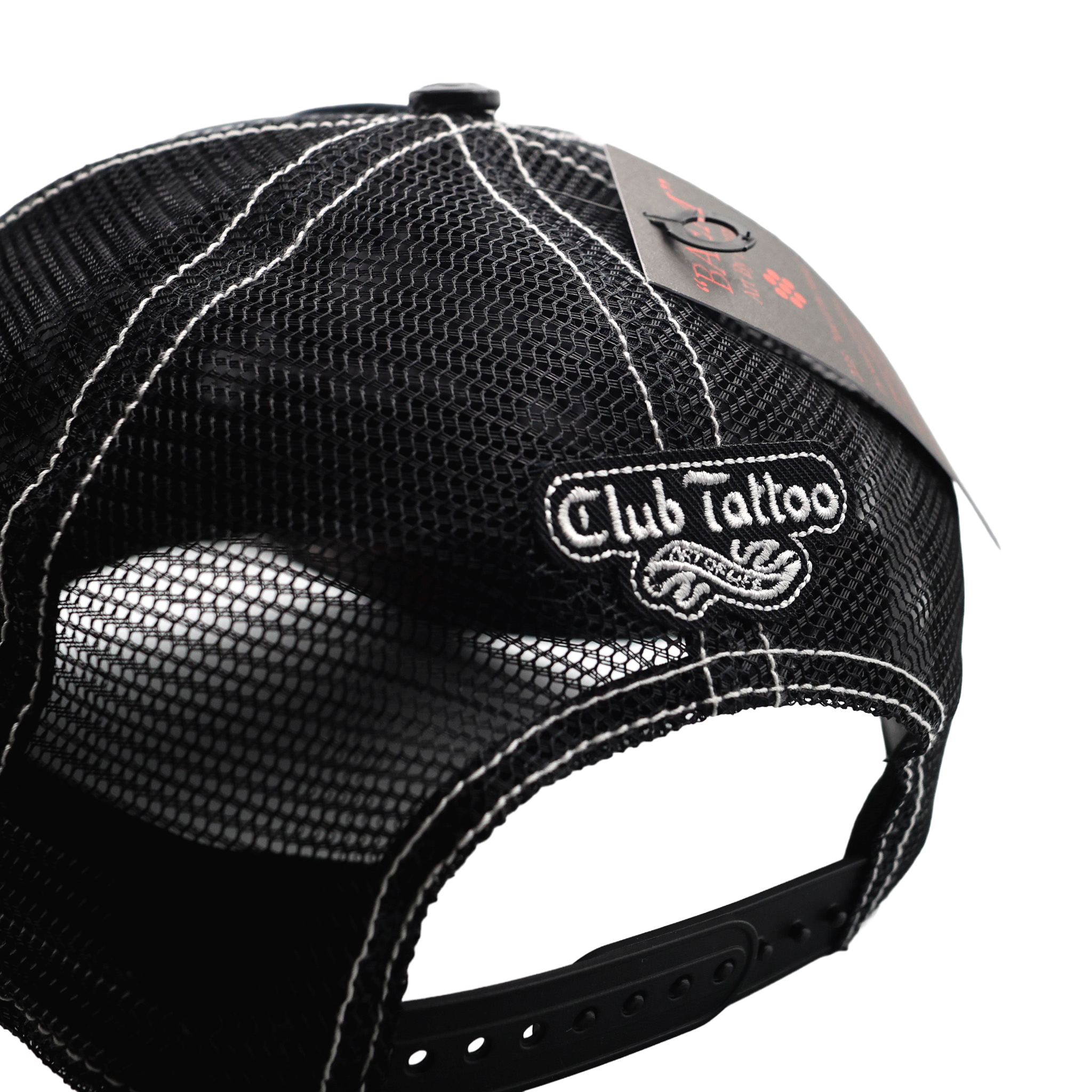 Introducing the Club Tattoo "Baem" Trucker Hat, an exclusive release designed by renowned Scottsdale tattoo artist Nam G. As part of our commitment to unrivaled artistic integrity , this piece isn't just an accessory—it’s a wearable chronicle of your journey.