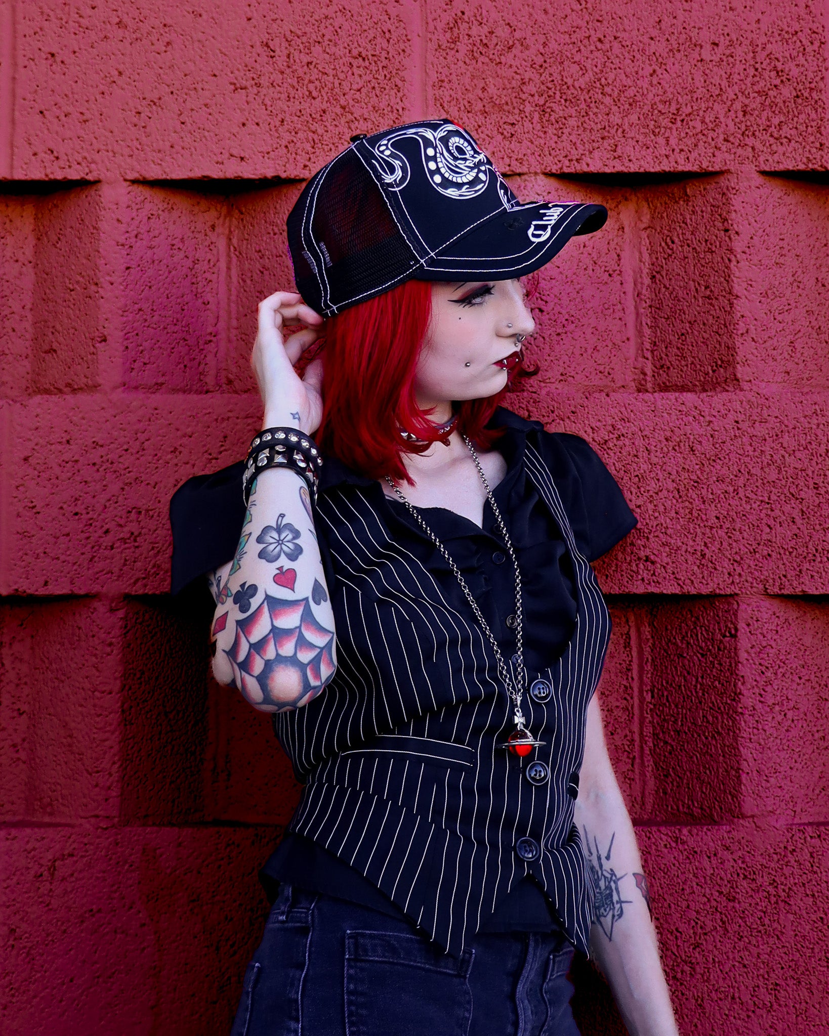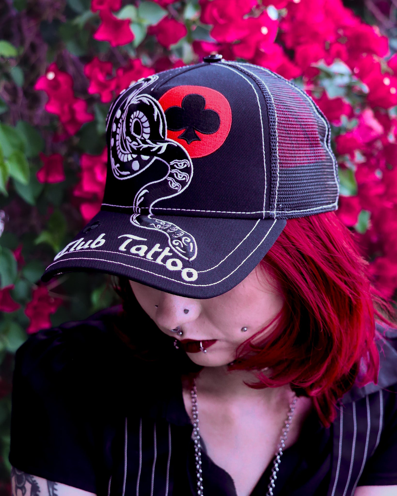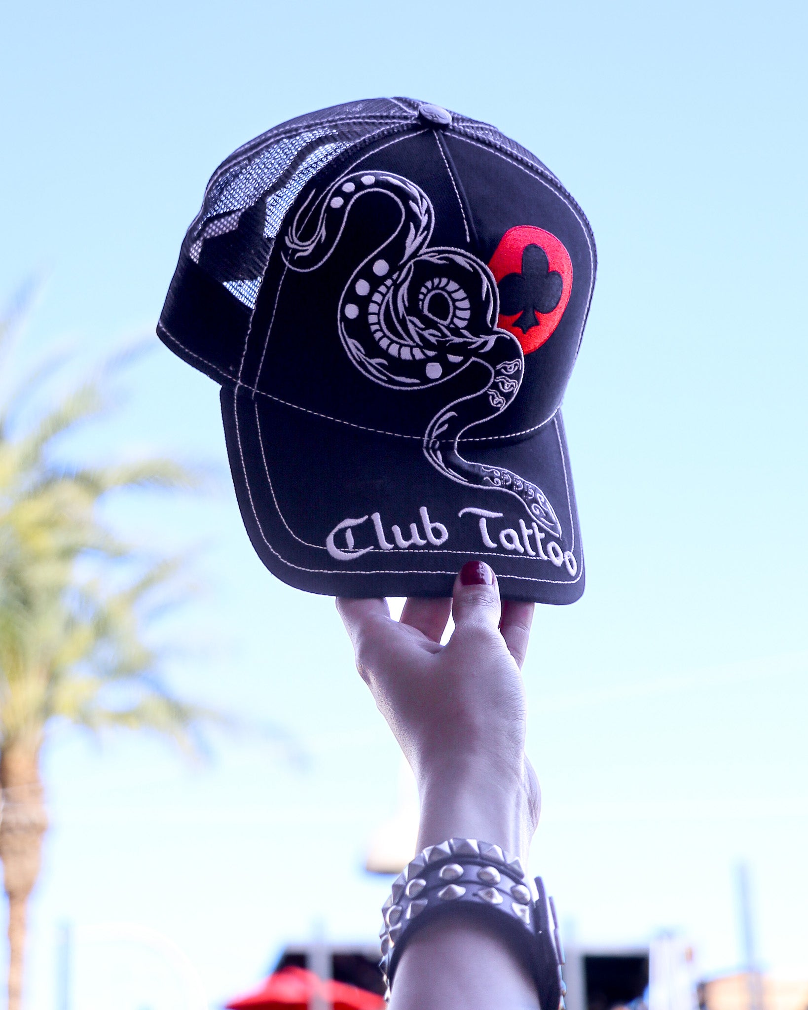 Introducing the Club Tattoo "Baem" Trucker Hat, an exclusive release designed by renowned Scottsdale tattoo artist Nam G. As part of our commitment to unrivaled artistic integrity , this piece isn't just an accessory—it’s a wearable chronicle of your journey.